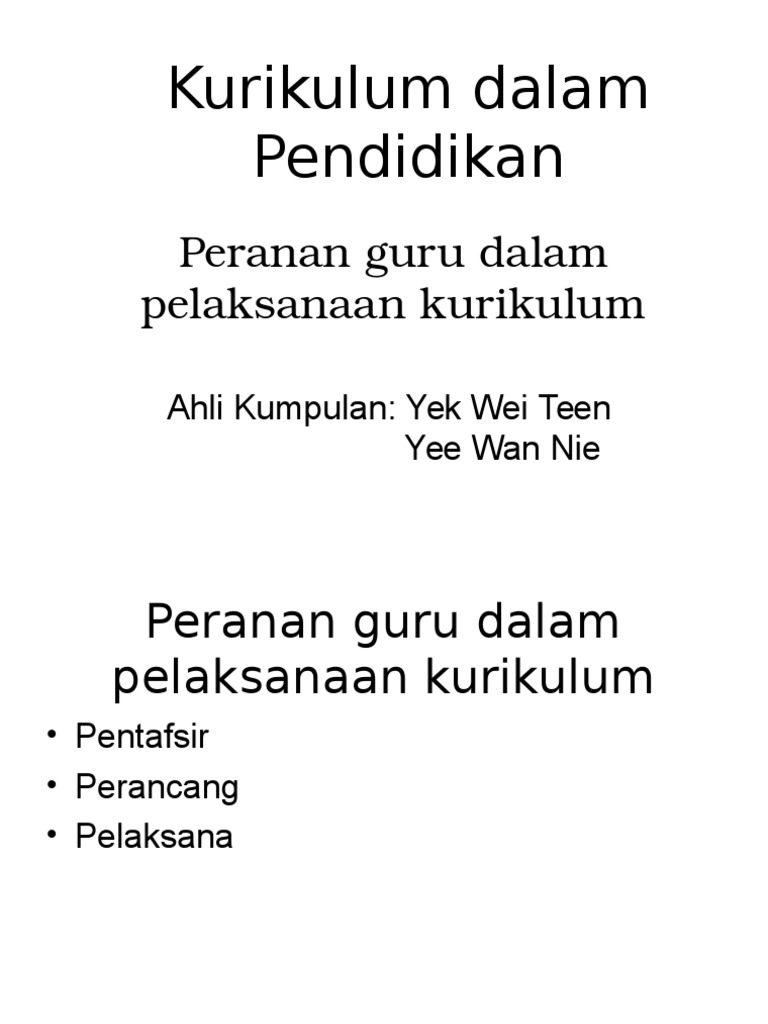 Peranan guru n kurikulum 1. Peranan Guru Dalam Pelaksanaan Kurikulum di bilik darjah Mentafsir. Jumat 20 September 2013 guru-guru SMP-SMA di lingkungan Labschool Yayasan Pembina YP Universitas Negeri Jakarta UNJ diundang untuk mengikuti kegiatan seminar penerapan kurikulum 2013.